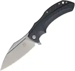 brand-Bastinelli Creations 4.75" closed. 3.75" stonewash finish Elmax steel blade. Carbon fiber handle with stonewash finish stainless back handle. Extended tang. Lanyard hole. Pocket clip. Fox Knives collaboration. Black synthetic zippered storage case. Boxed.